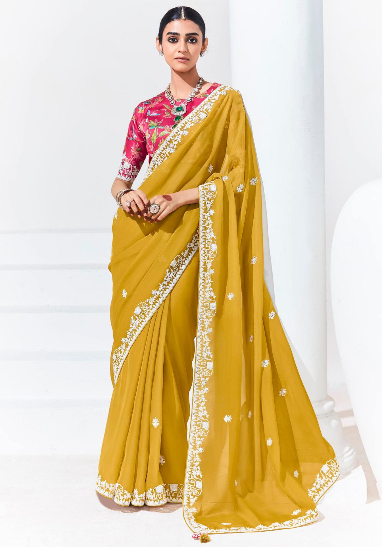 Buy Graceful Organza Dark Golden Rod Saree online.