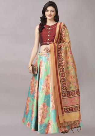 Buy Graceful Satin & Silk Powder Blue Lehenga Choli online.