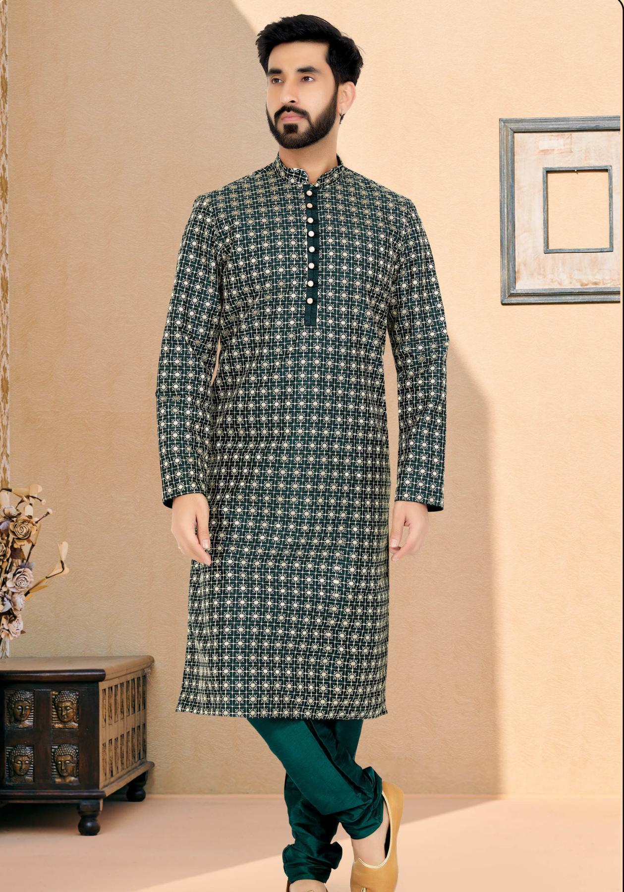Picture of Graceful Silk Dark Sea Green Kurtas