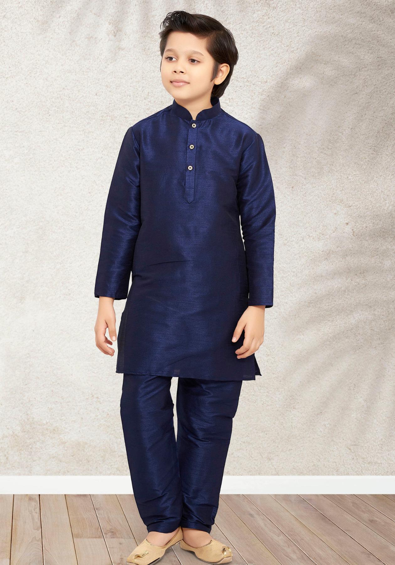 Buy Graceful Silk Dark Slate Blue Kids Kurta Pyjama online.