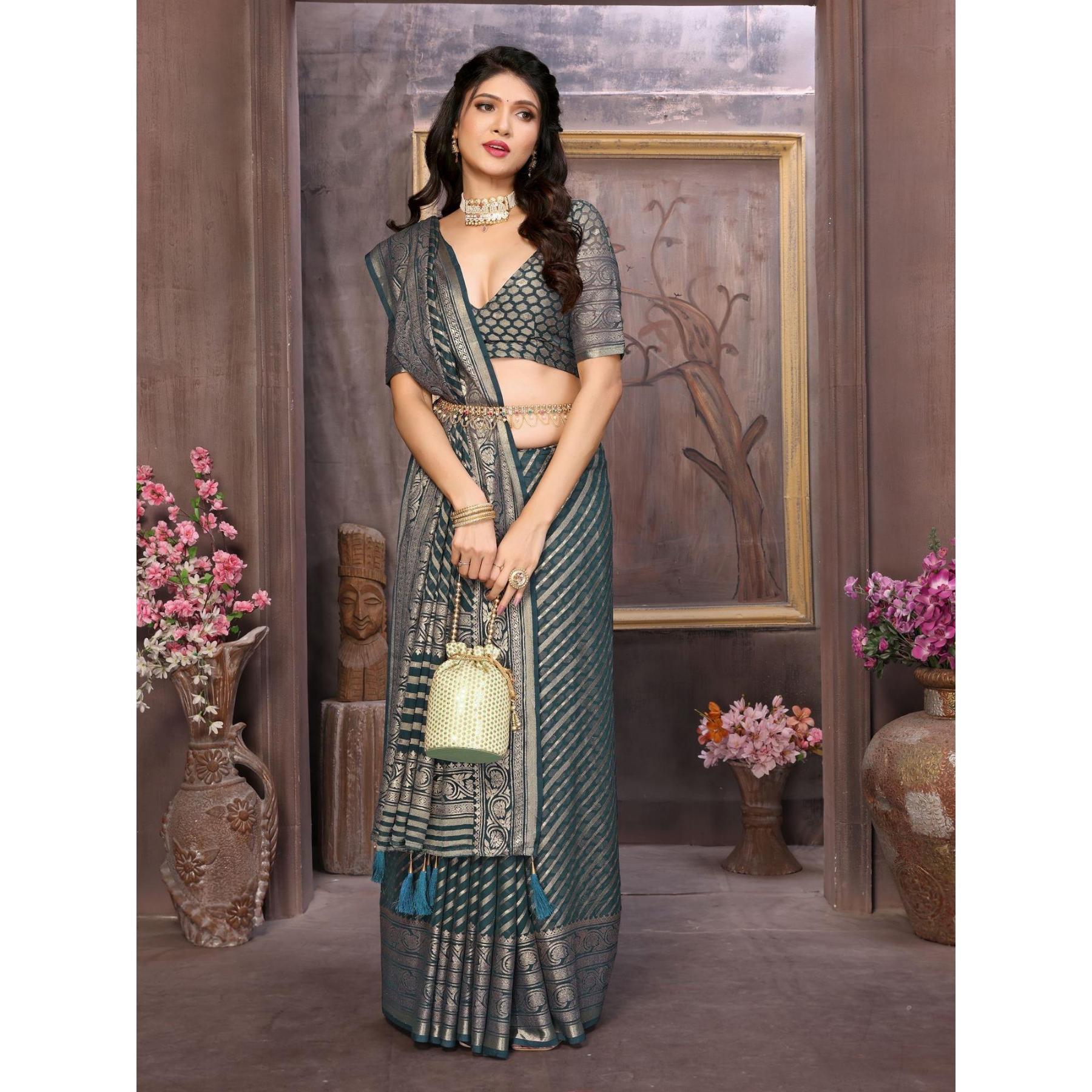 Saree Fabric: Moss Brasso.