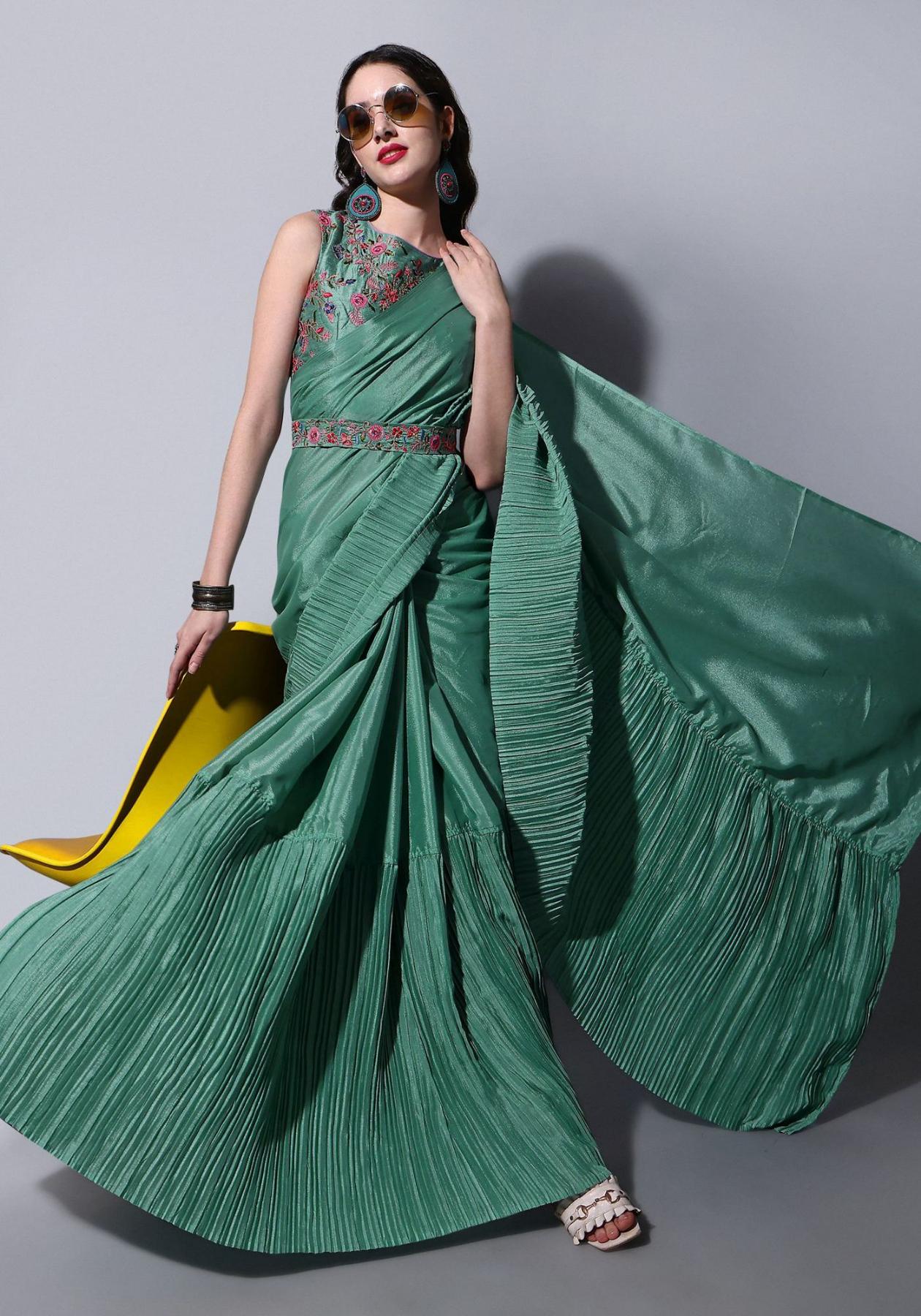Buy Grand Chiffon Cadet Blue Saree online.