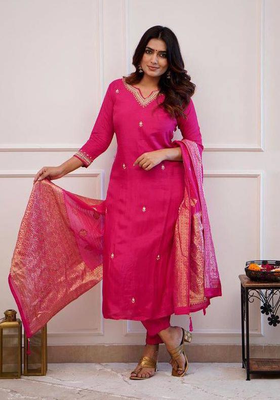 Buy Grand Chiffon Deep Pink Readymade Salwar Kameez online.