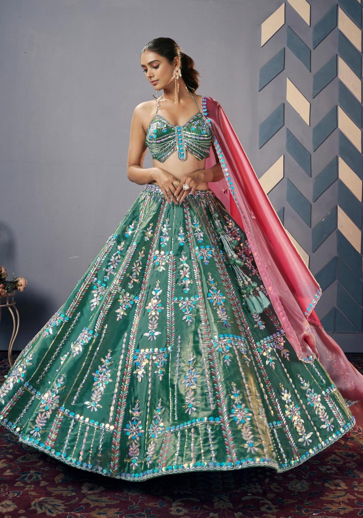 Buy Grand Chiffon Sea Green Lehenga Choli online.