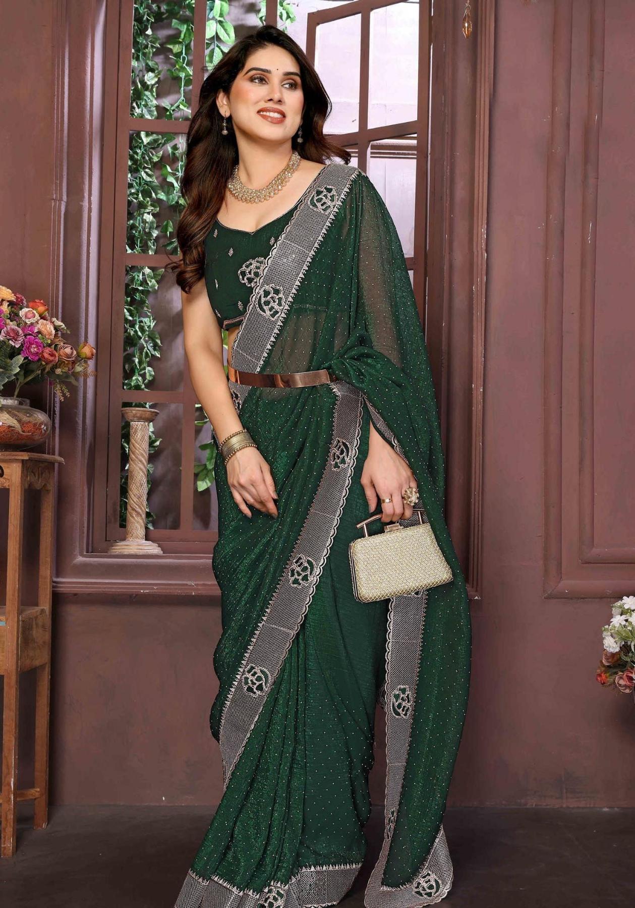 In Pre-stitched saree you will get the saree with stitched plates, belt on the waist and adjustable hooks. So you can wear the saree like a skirt