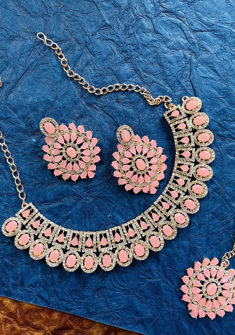 Details: 1 Necklace Set, 2 Earrings, 1 Mang Tikka.