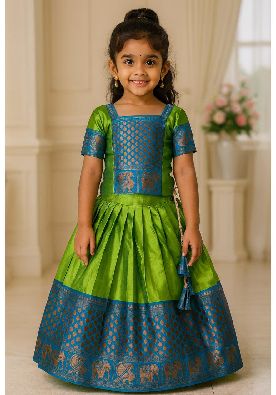 • Grand Linen & Silk Olive Drab Kids Lehenga Choli