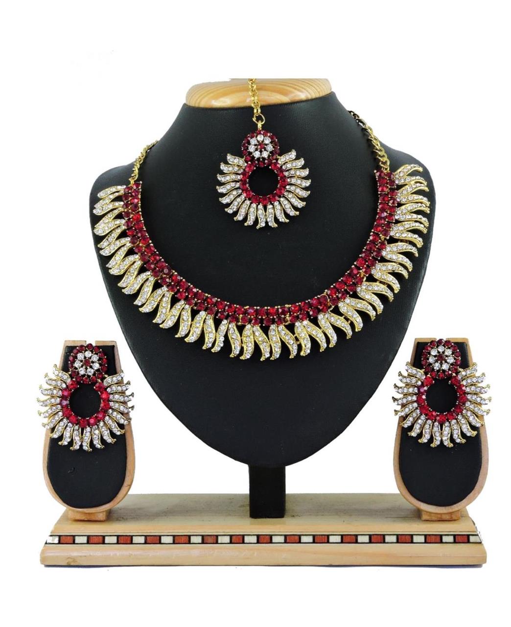 Buy Grand Maroon Necklace Set Jewellery Neckless For Women