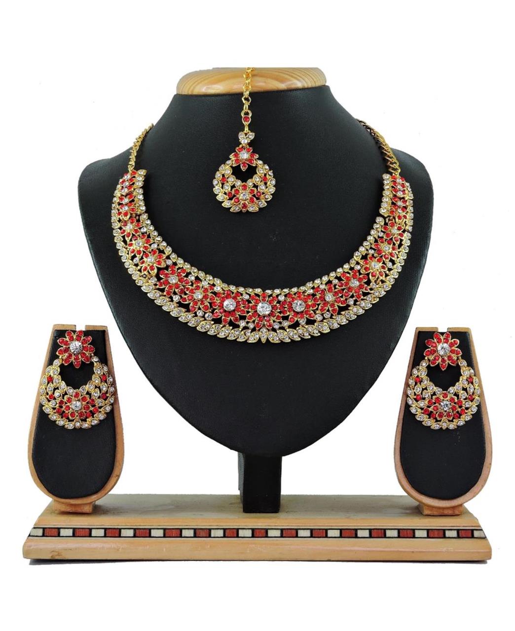 Buy Grand Red Necklace Set Jewellery Neckless For Women