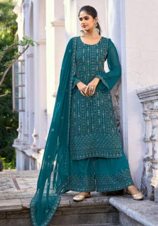 Buy Grand Silk Teal Straight Cut Salwar Kameez online.