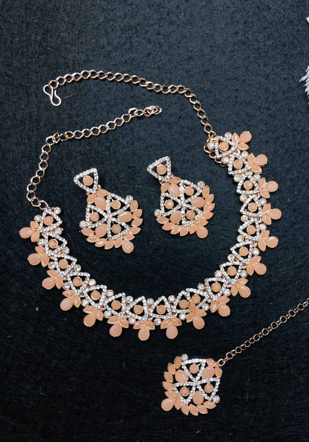 Details: 1 Necklace Set, 2 Earrings, 1 Mang Tikka.