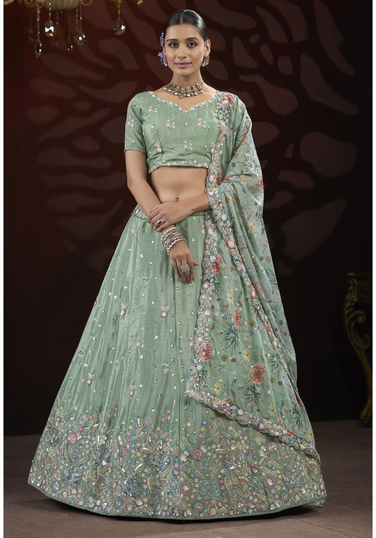 Buy Ideal Chiffon Dark Sea Green Lehenga Choli online.