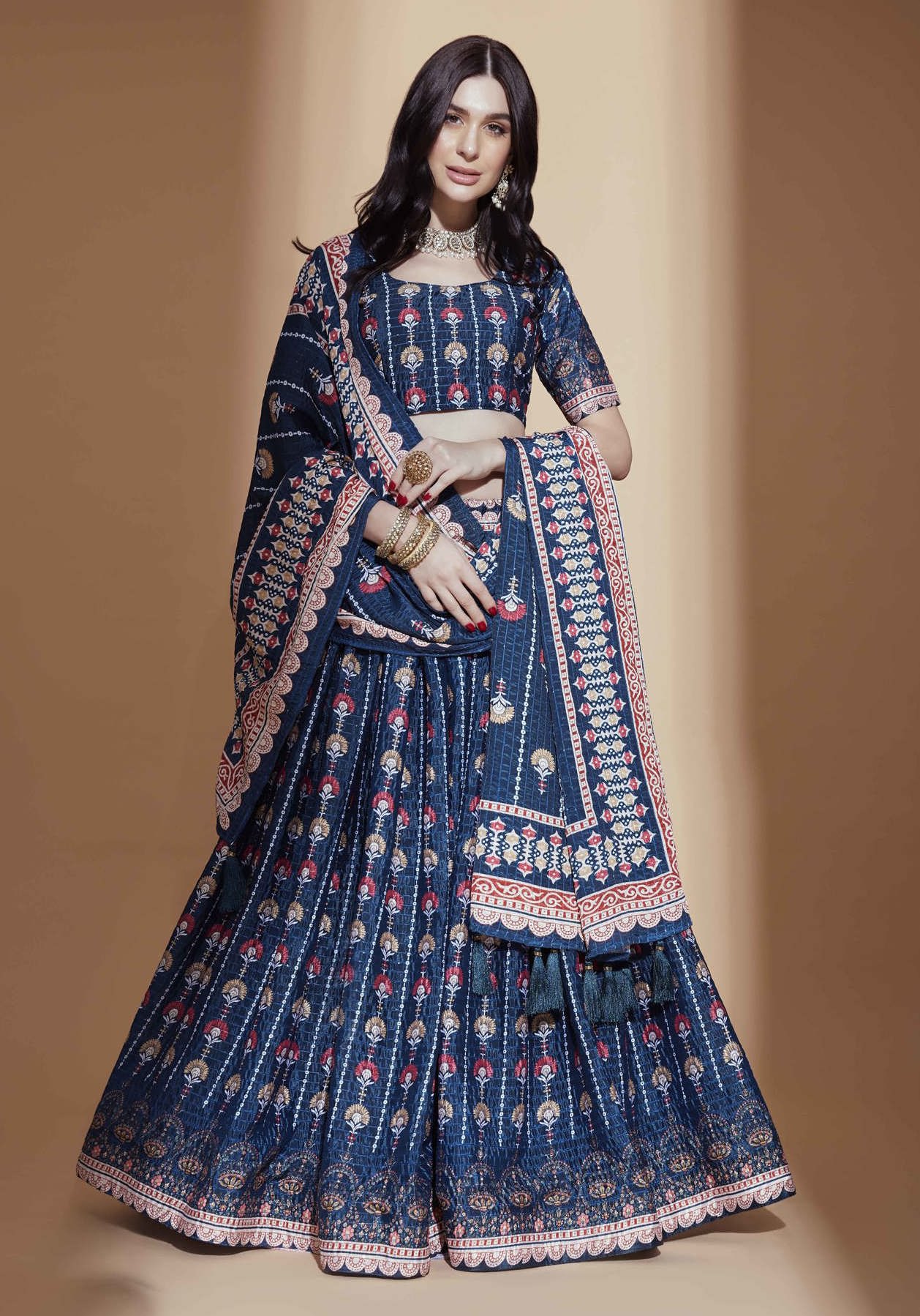 Buy Ideal Chiffon Midnight Blue Lehenga Choli online.