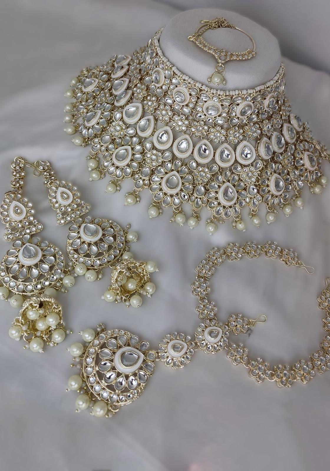 Details: 1 Necklace, 1 Pair Earrings, 1 Nose Ring, 1 Mang Patti With Mang Tikka.