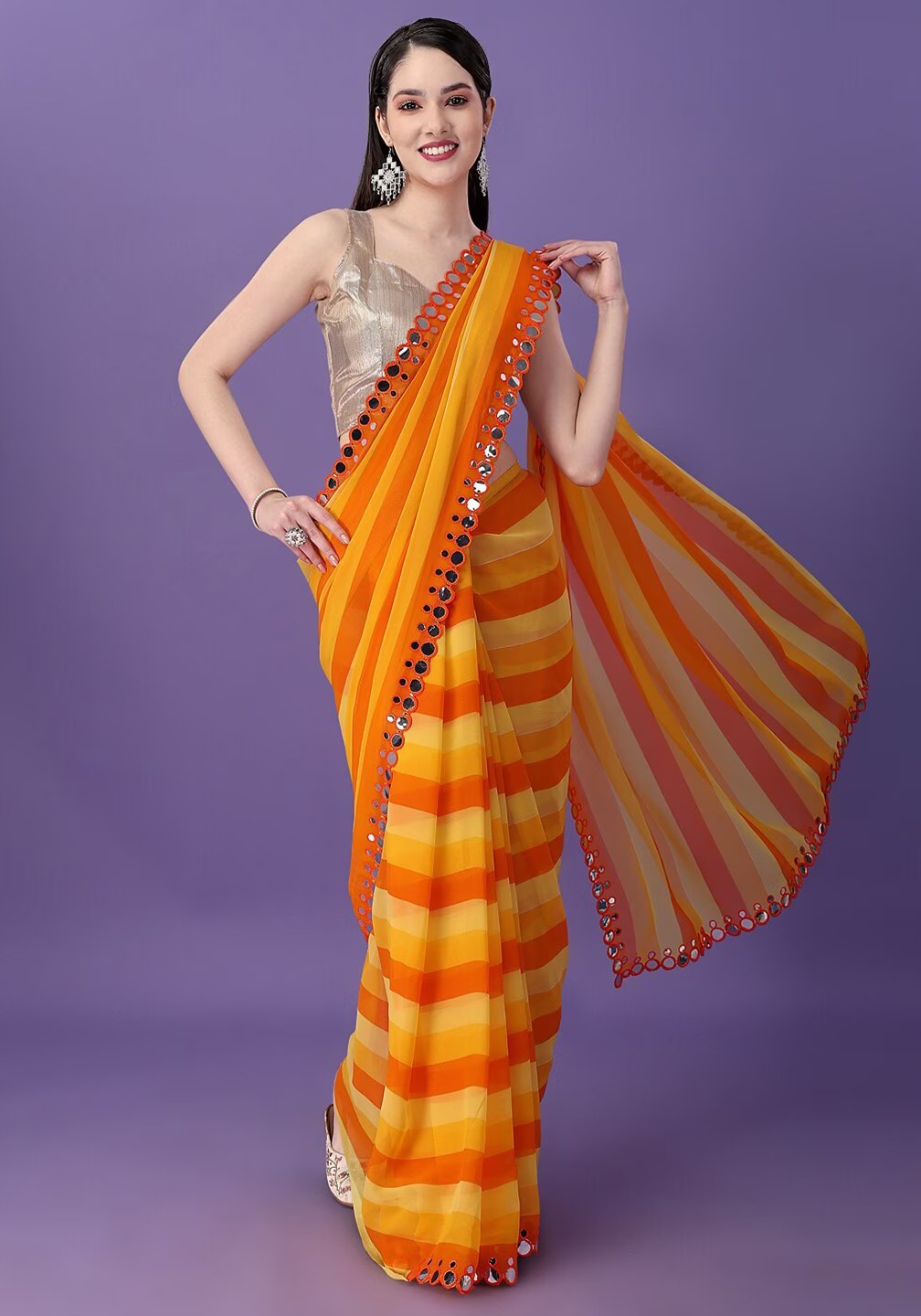 In Pre-stitched saree you will get the saree with stitched plates, belt on the waist and adjustable hooks. So you can wear the saree like a skirt