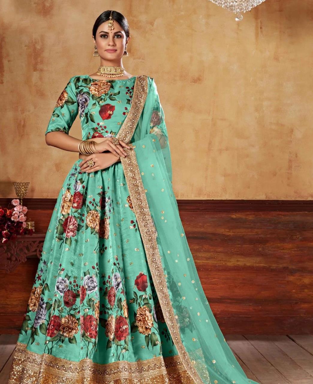 Lehenga Choli is Designed with Digital Print with Dori,Sequins Embroidered Border and Pearl & Jari Sequins Butti WorkWork.
