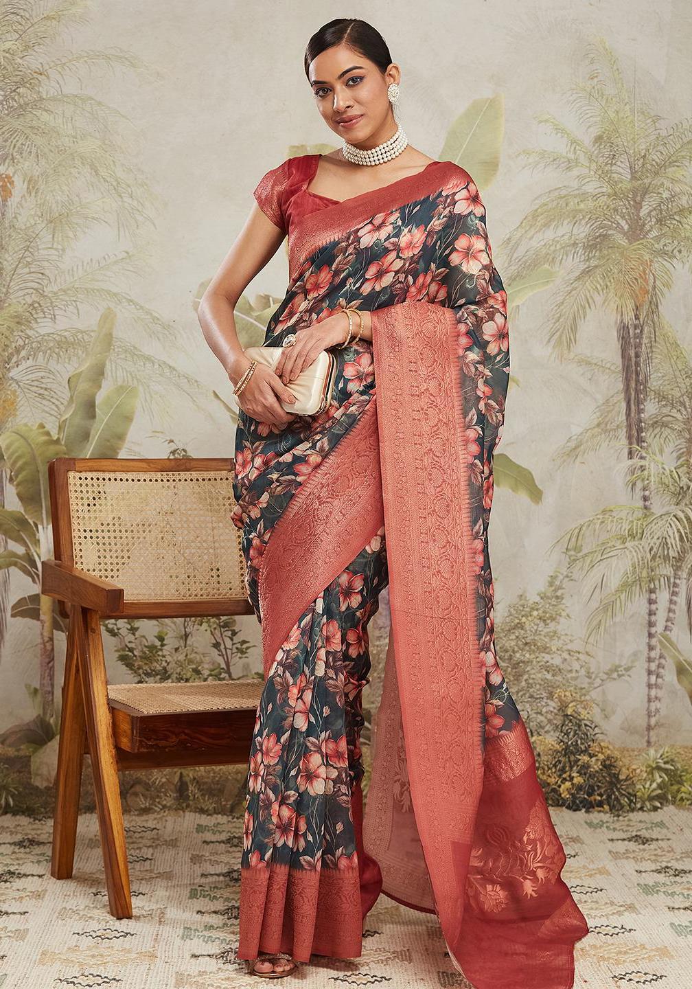 Buy Ideal Silk Dark Slate Grey Saree online.