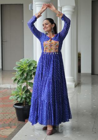 Buy Lovely Georgette Slate Blue Party Wear Gown online.