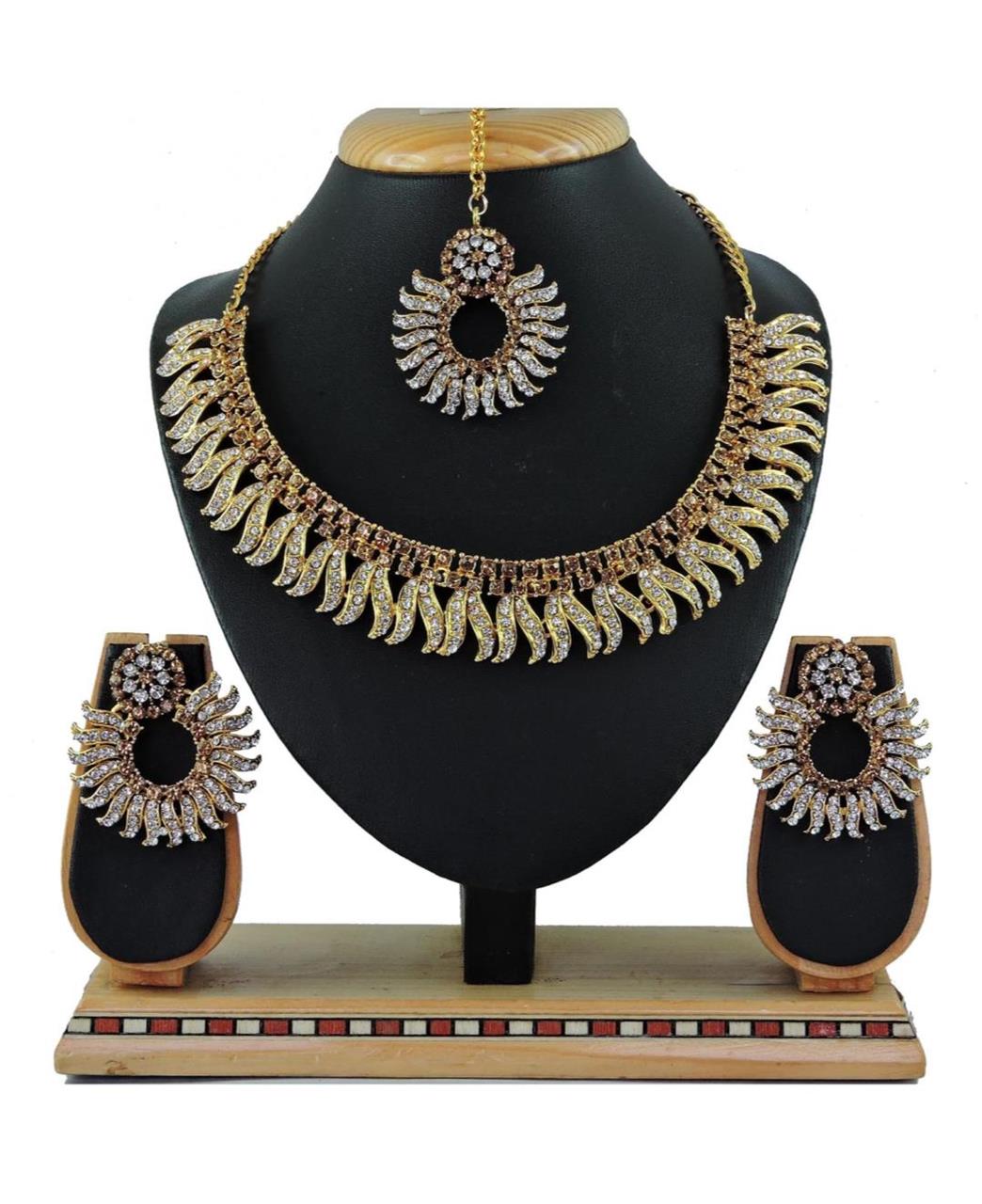 Buy Lovely Gold & White Necklace Set Jewellery Neckless For Women