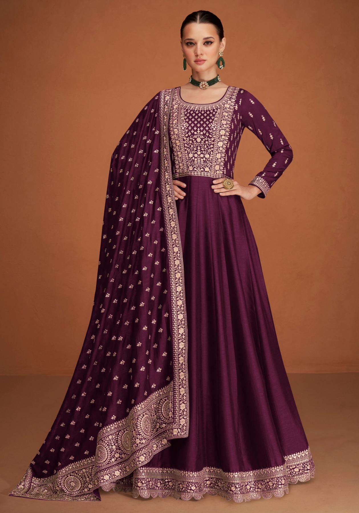 Buy Lovely Silk Dark Magenta Party Wear Gown online.