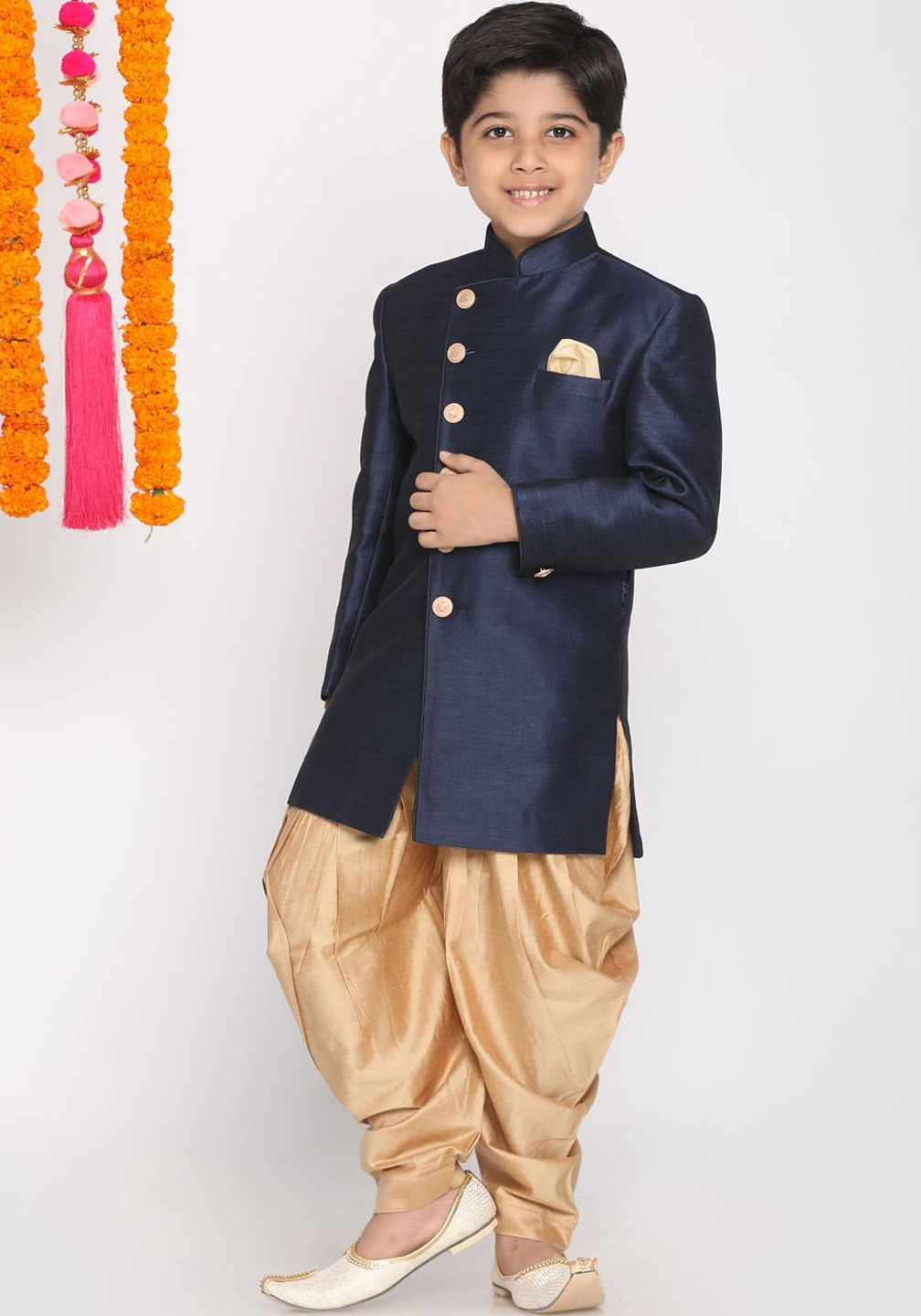 Picture of Lovely Silk Dark Slate Blue Kids Kurta Pyjama Picture of Lovely Silk Dark Slate Blue Kids Kurta Pyjama