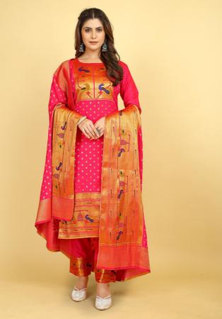 Buy Lovely Silk Deep Pink Straight Cut Salwar Kameez online.