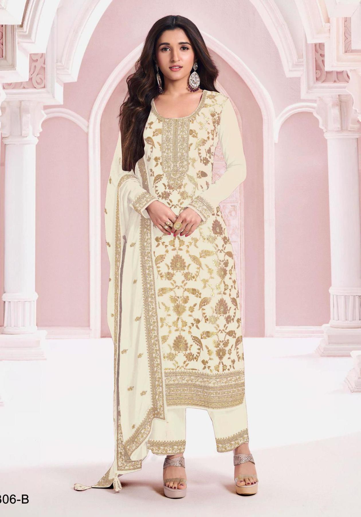 Buy Magnificent Chiffon Beige Straight Cut Salwar Kameez online.