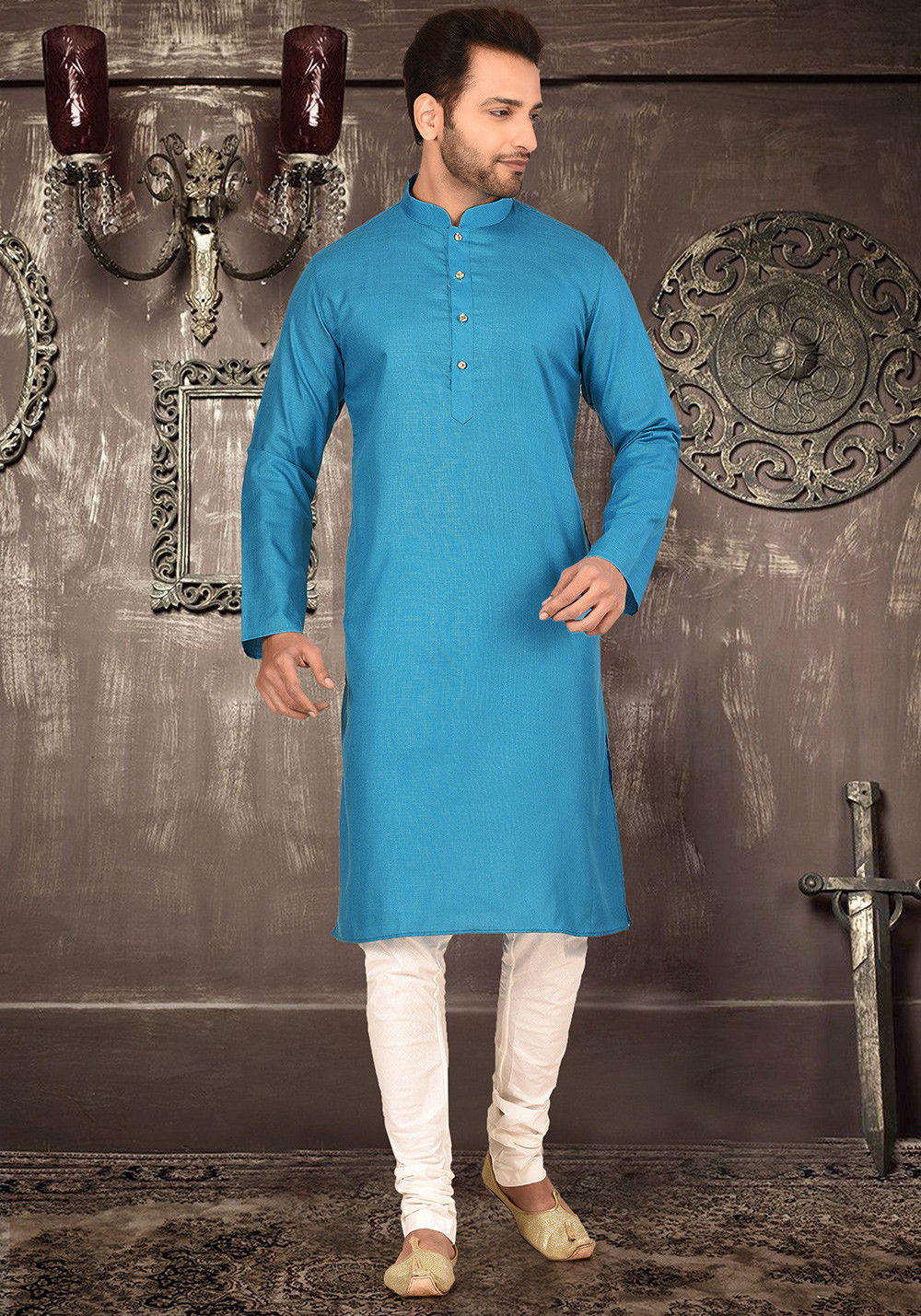 Picture of Magnificent Cotton Medium Turquoise Kurtas