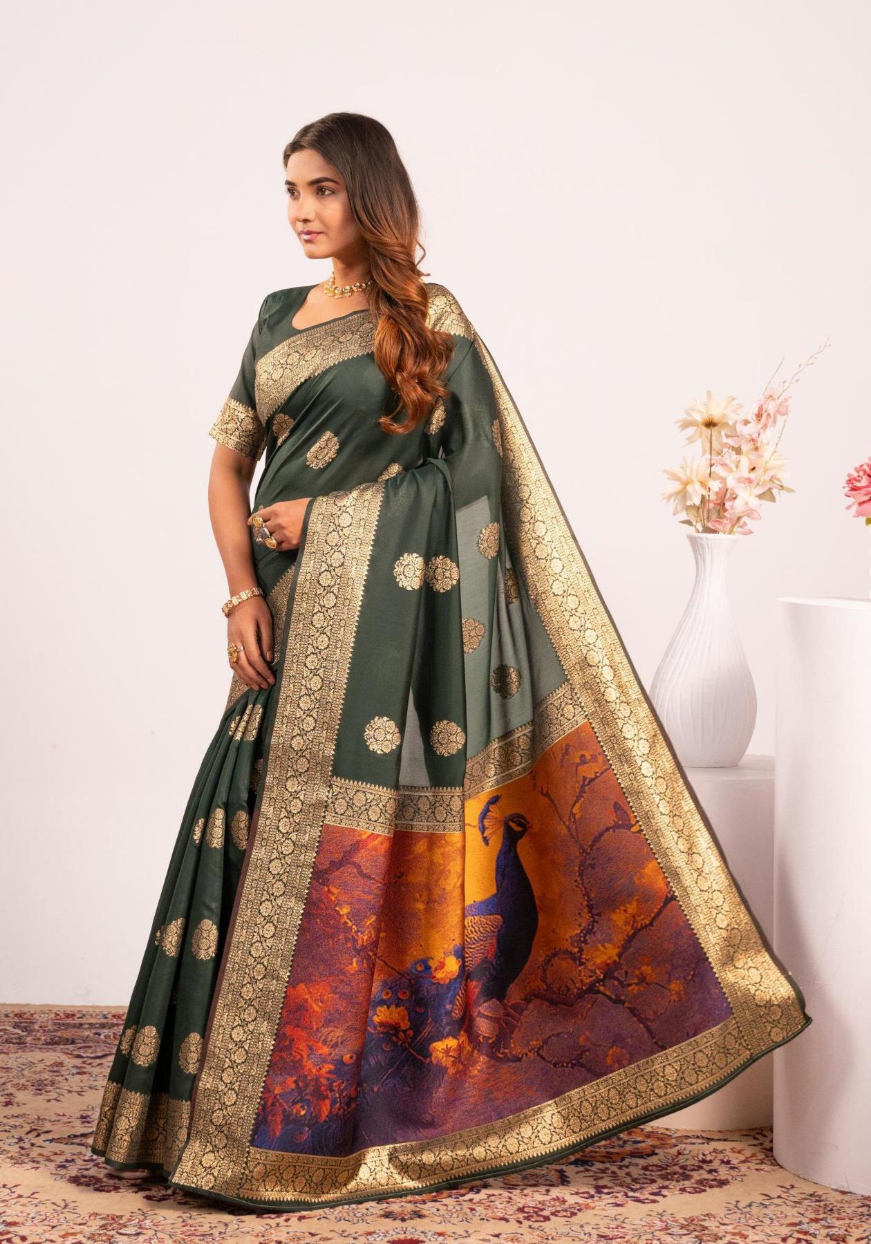 Work: Resham Weaving Paithani Pallu & Muniya Weaving Zari Border With All Over Weaving Butties Work.