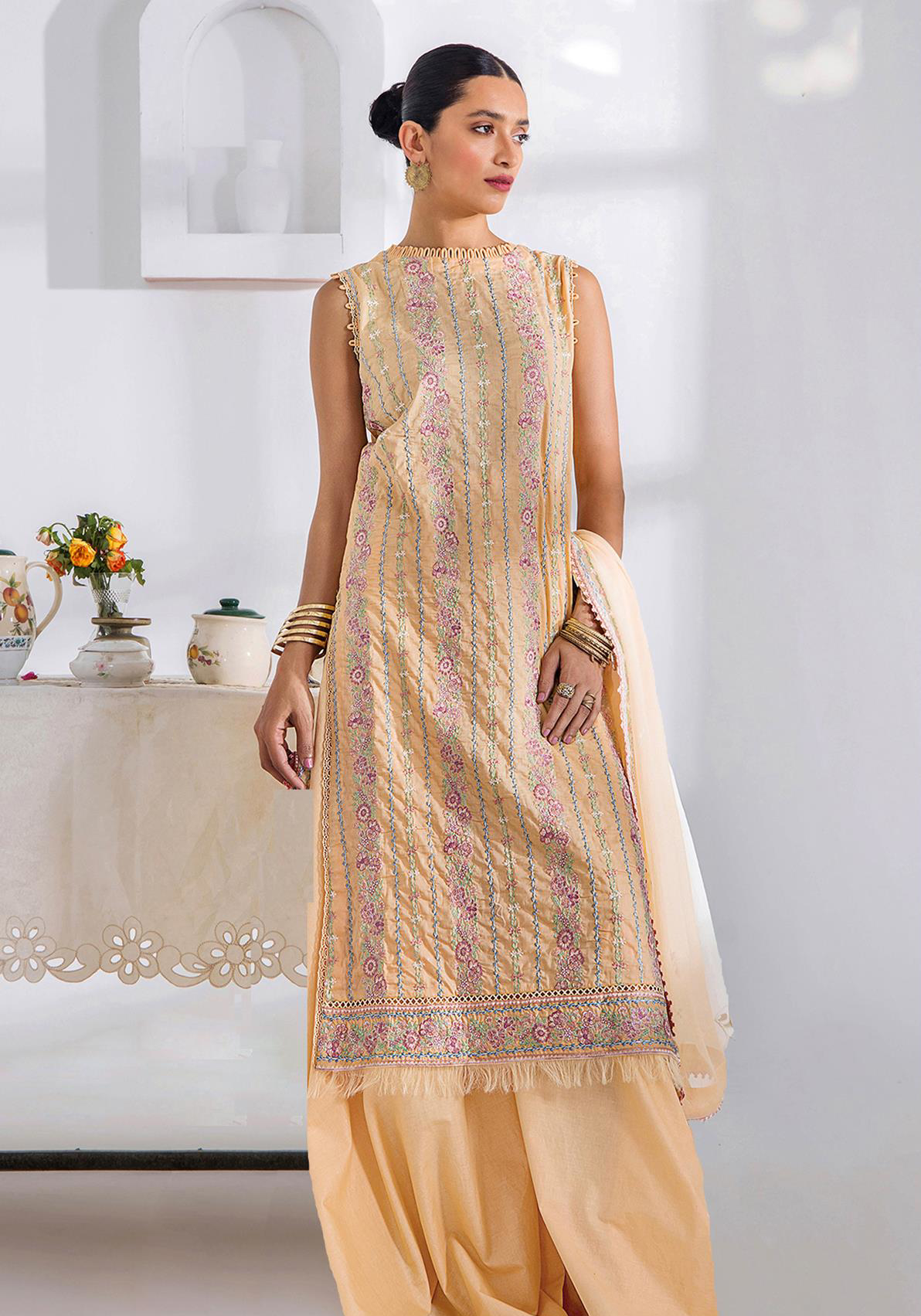 Normally size is measured between the underarm stitching lines from the stressed kameez.