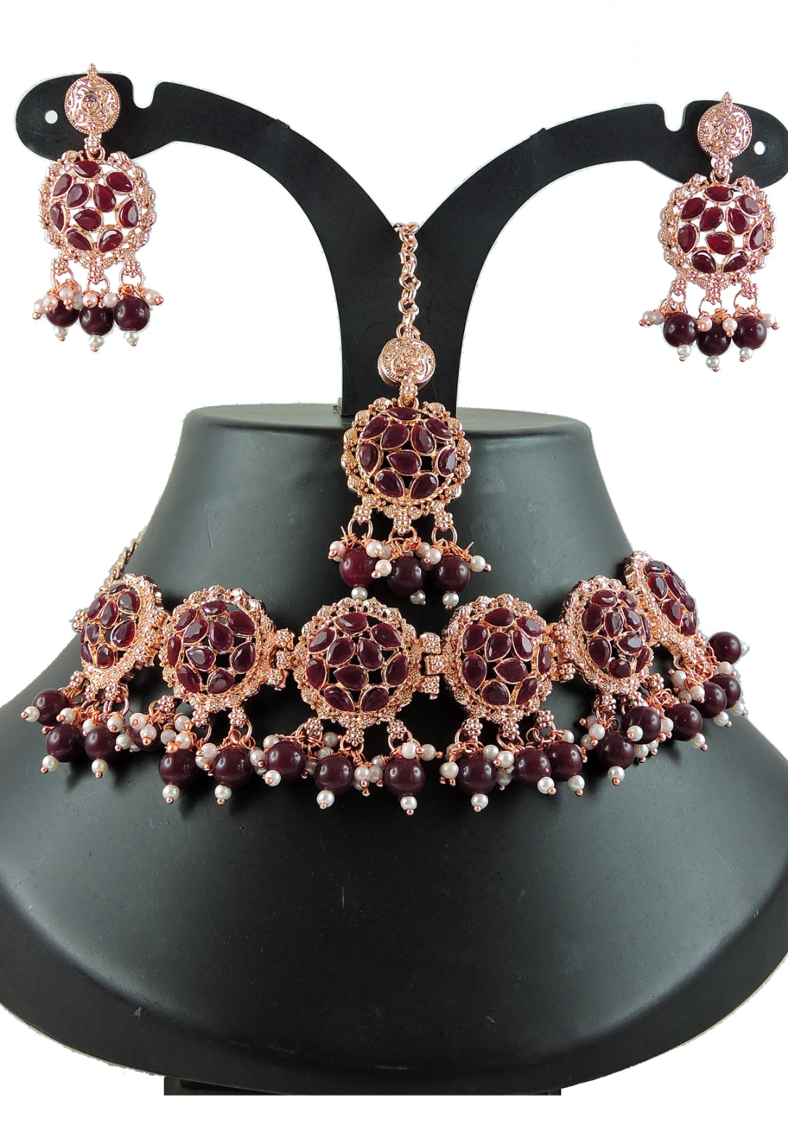 Details: 1 Necklace Set, 2 Earrings, 1 Mang Tikka.