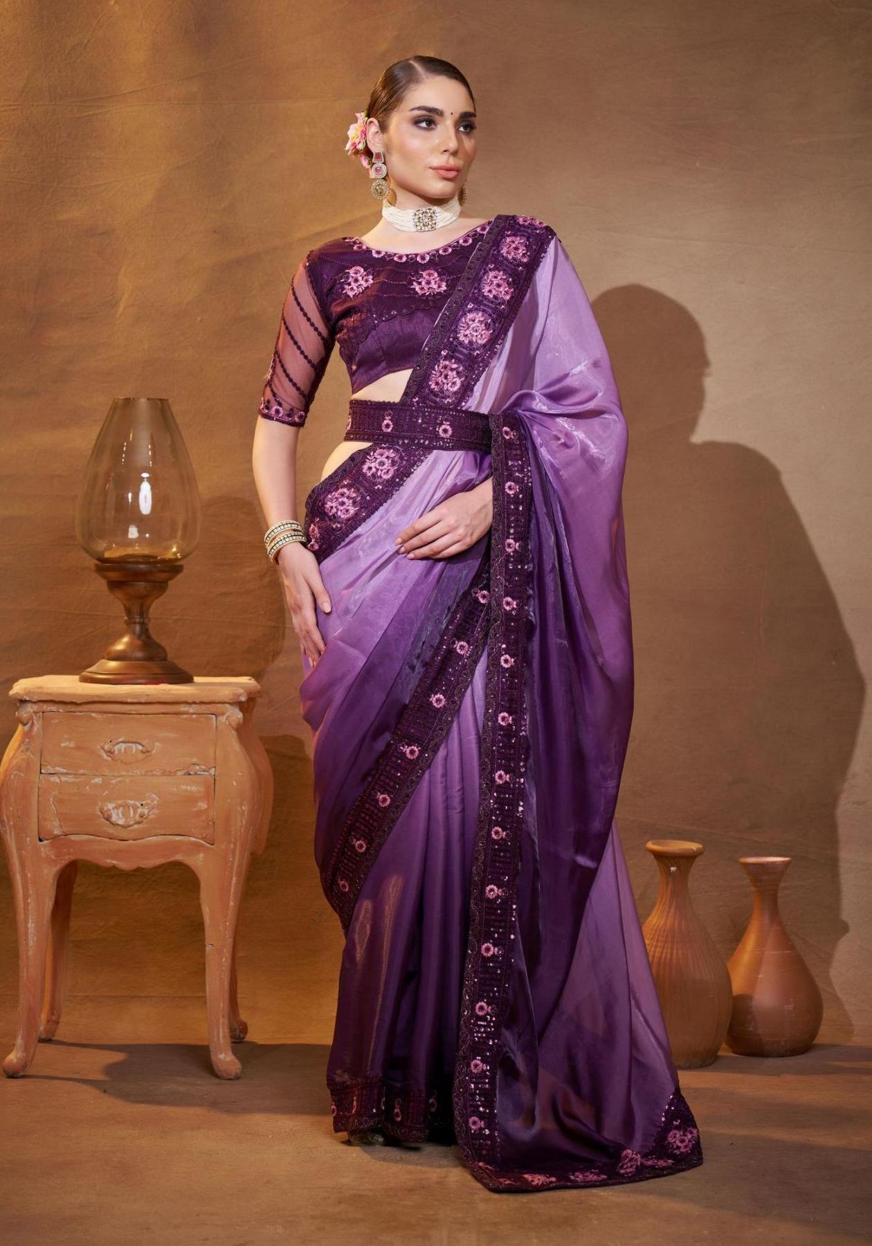 Buy Magnificent Georgette & Silk & Organza Plum Saree online.