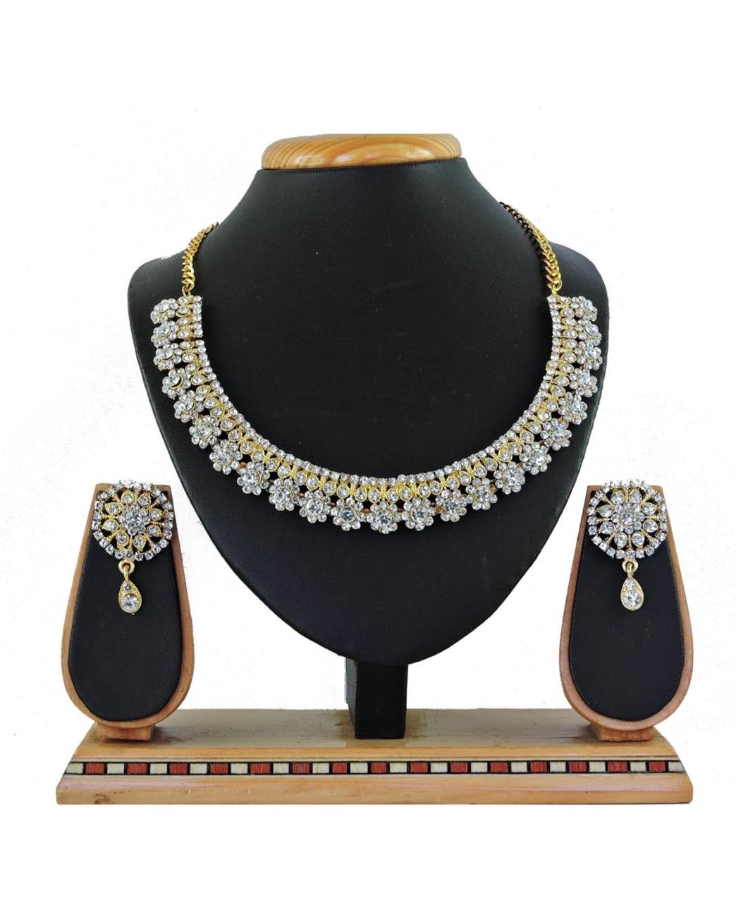 Buy Magnificent Golden & White Necklace Set Jewellery Neckless For Women