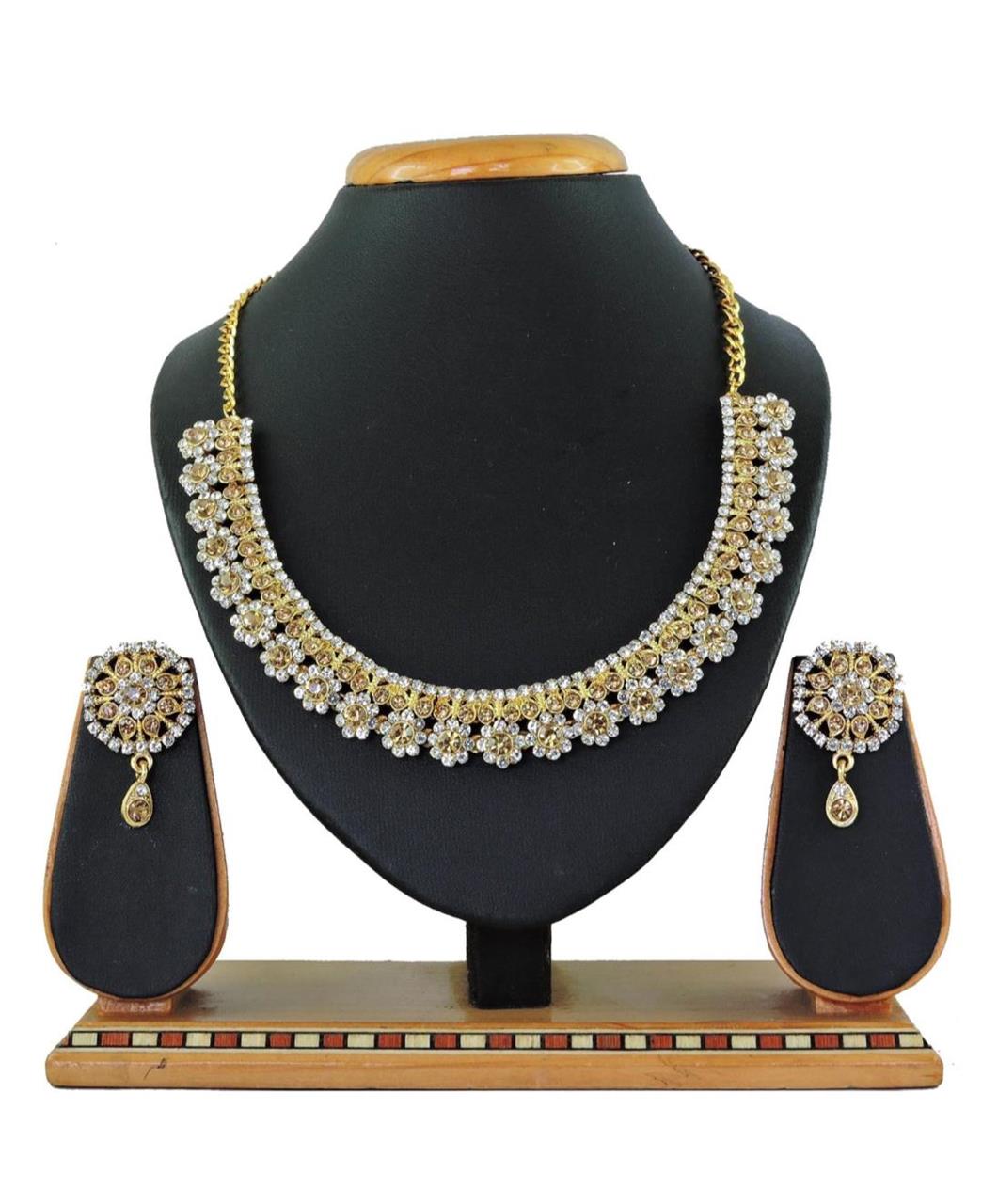 Buy Magnificent Golden & White Necklace Set Jewellery Neckless For Women