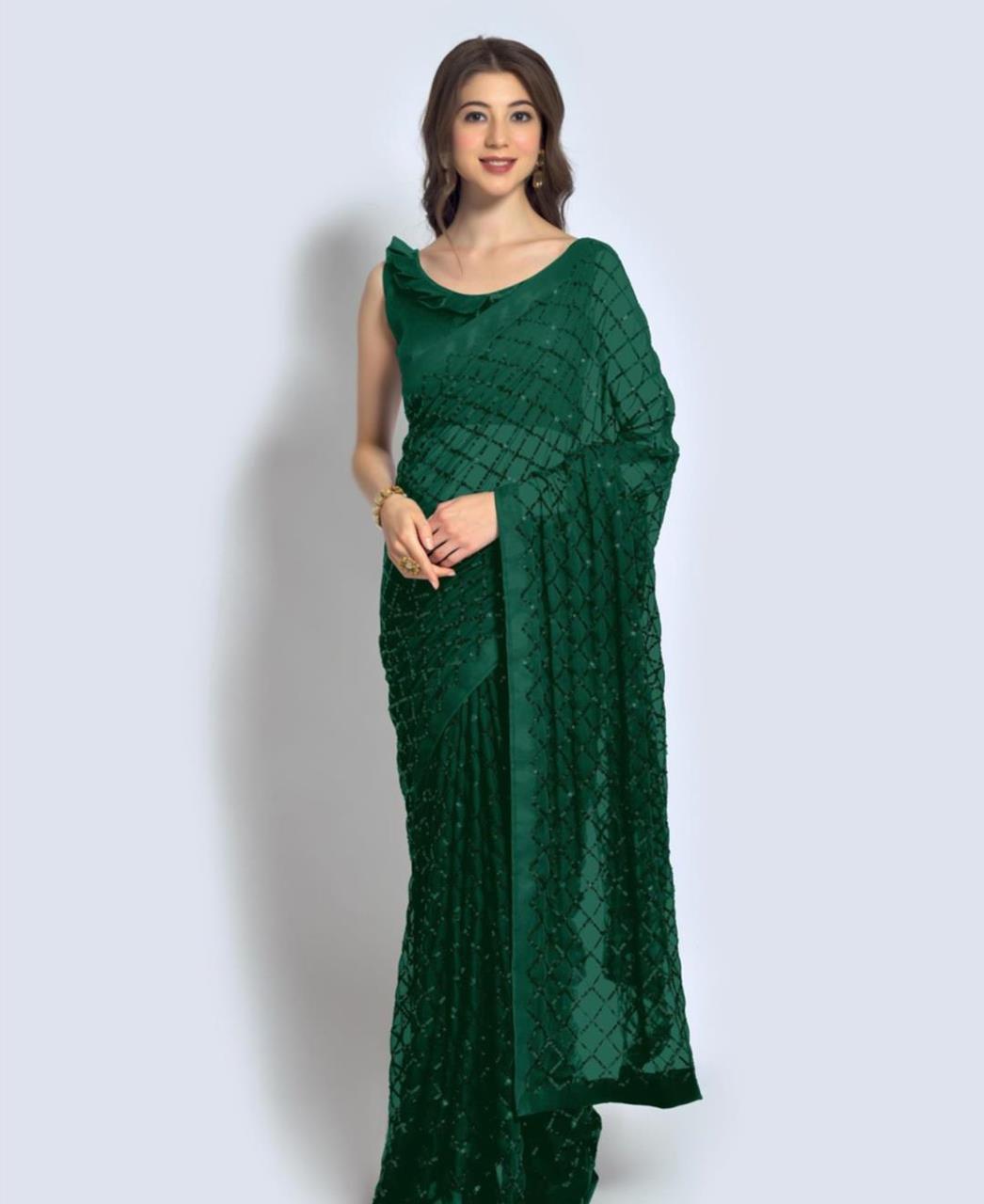 In Pre-stitched saree you will get the saree with stitched plates, belt on the waist and adjustable hooks. So you can wear the saree like a skirt