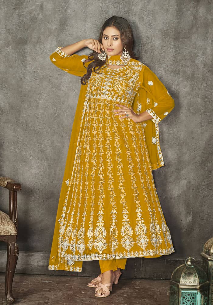 Normally size is measured between the underarm stitching lines from the stressed kameez.