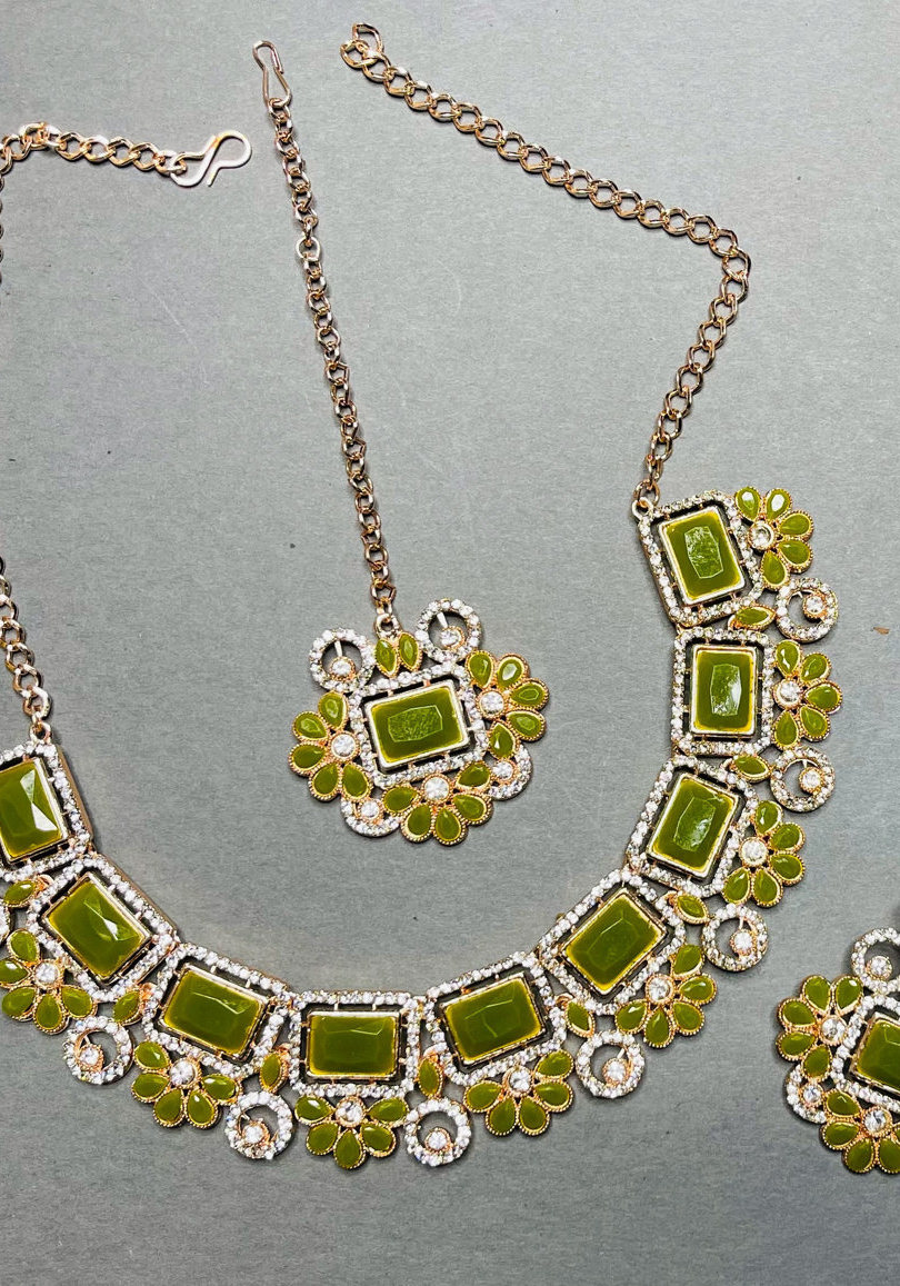Details: 1 Necklace Set, 2 Earrings, 1 Mang Tikka.