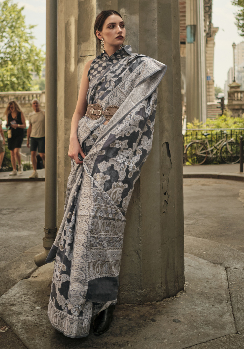 Beautifully Designed with Chikankari Zari Lucknowi Handloom Weaving Work Work.