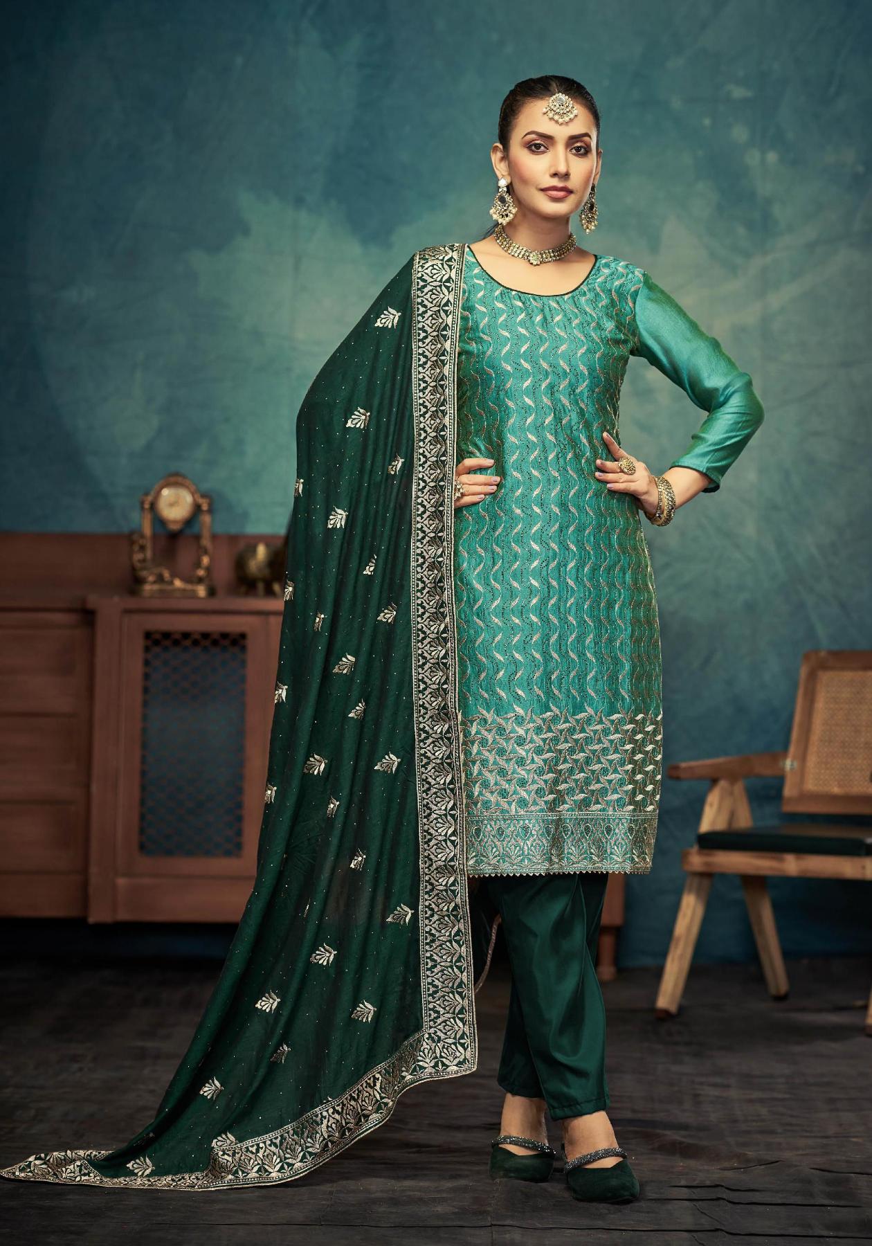 Buy Magnificent Silk Cadet Blue Straight Cut Salwar Kameez online.