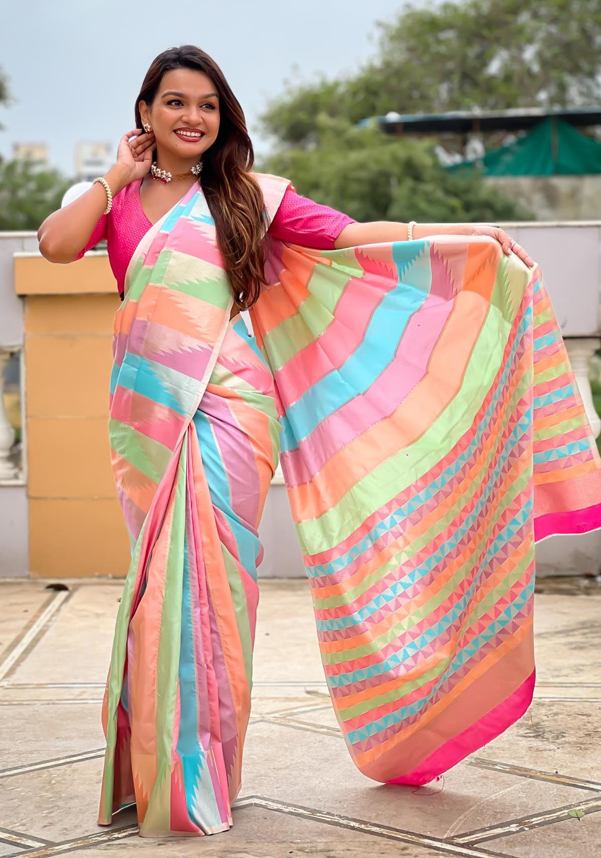 In Pre-stitched saree you will get the saree with stitched plates, belt on the waist and adjustable hooks. So you can wear the saree like a skirt