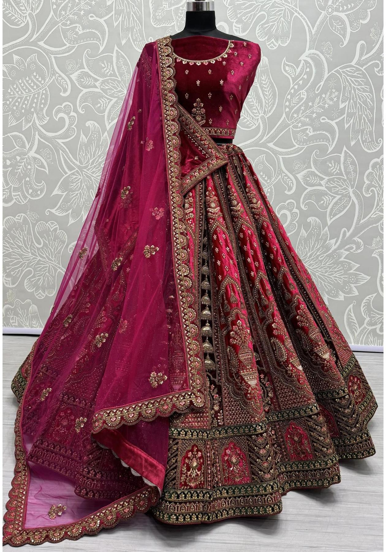 Work: Velvet Kali Patch, Dori,Jari Embroidery,Diamond Work.
