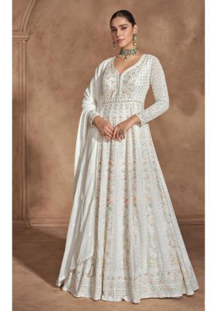 Buy Marvelous Chiffon Off White Anarkali Salwar Kameez online.