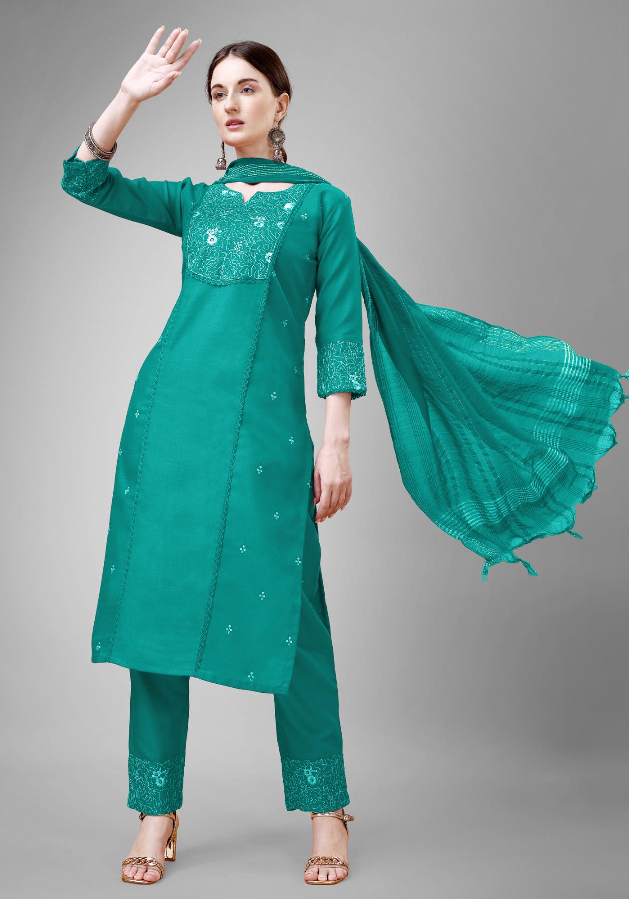 Buy Marvelous Cotton Dark Cyan Readymade Salwar Kameez online.