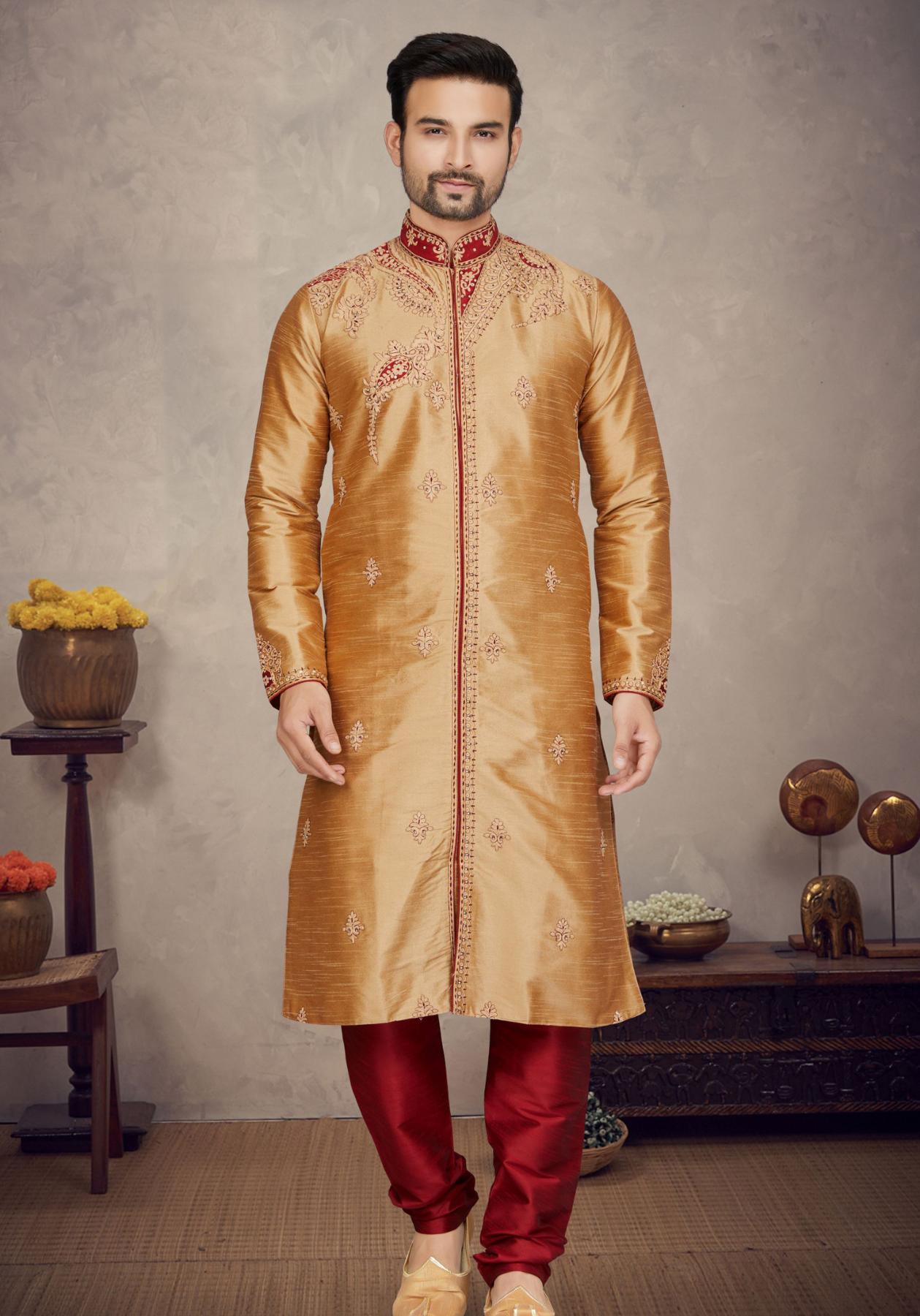 Picture of Marvelous Cotton & Silk Tan Kurtas Picture of Marvelous Cotton & Silk Tan Kurtas