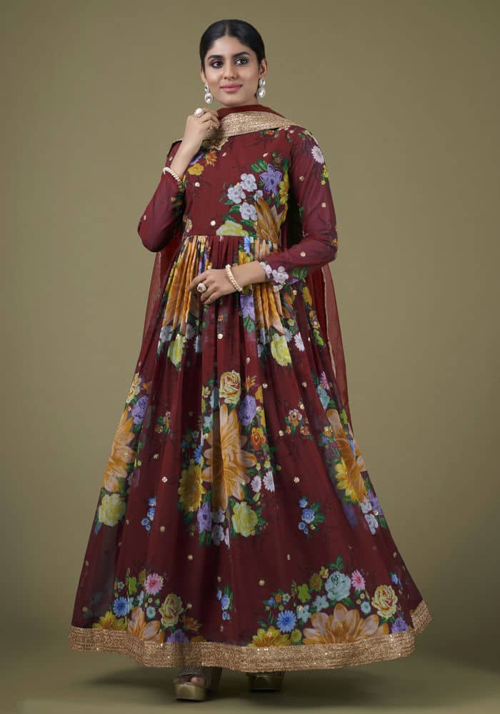 Buy Marvelous Georgette Brown Anarkali Salwar Kameez online.