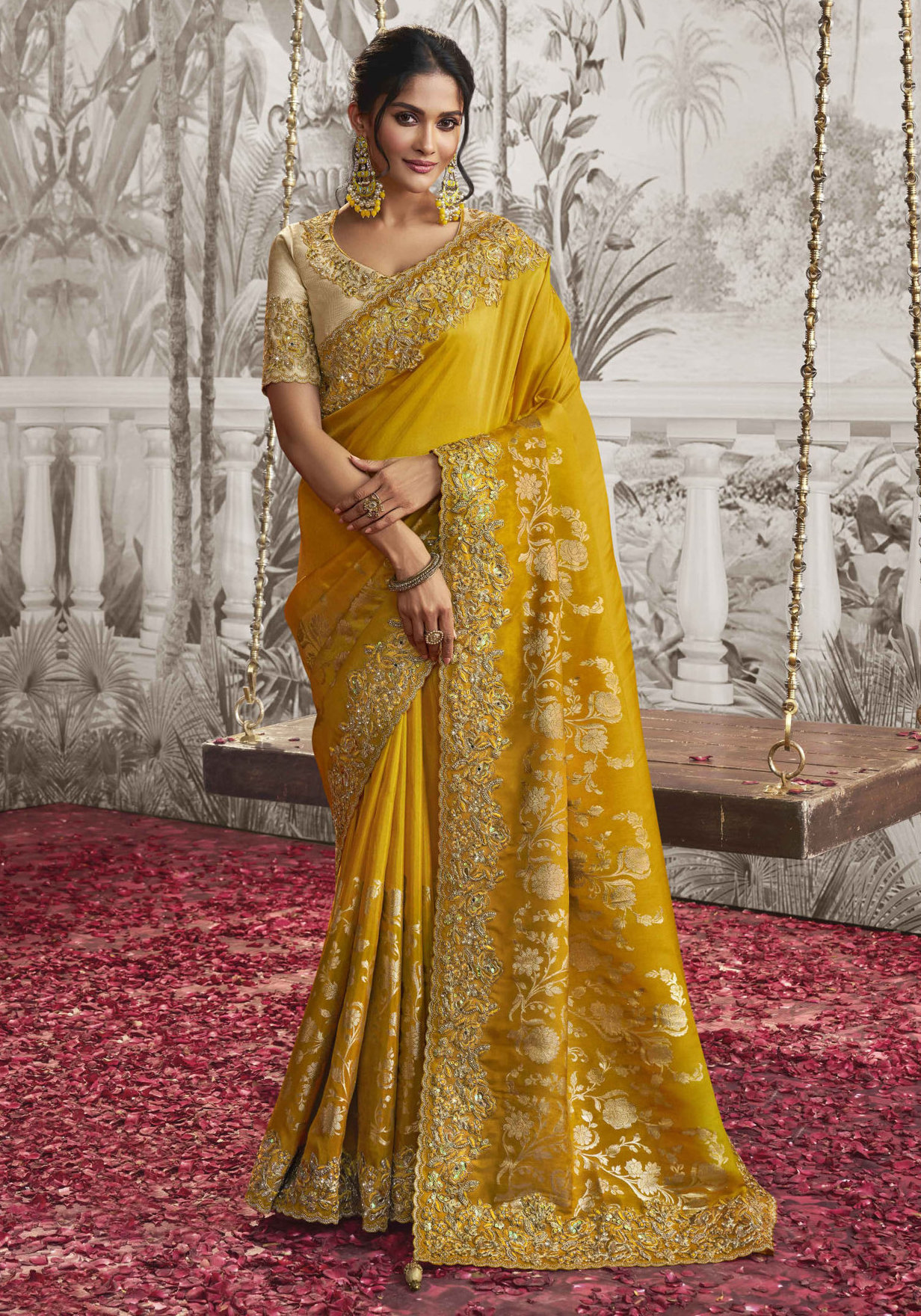 Buy Marvelous Georgette Dark Golden Rod Saree online.