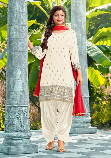 Buy Marvelous Georgette White Straight Cut Salwar Kameez online.