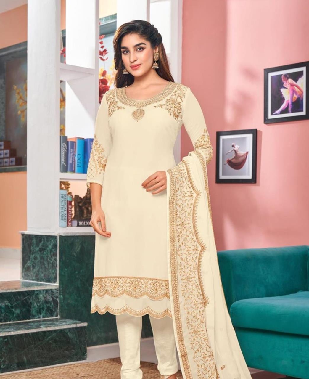 Normally size is measured between the underarm stitching lines from the stressed kameez.