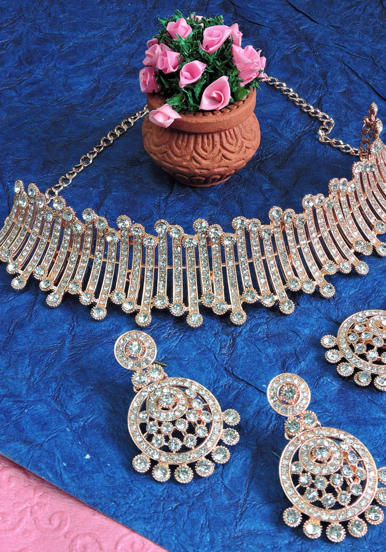 Details: 1 Necklace, 1 Pair Earrings, 1 Mang Tikka.