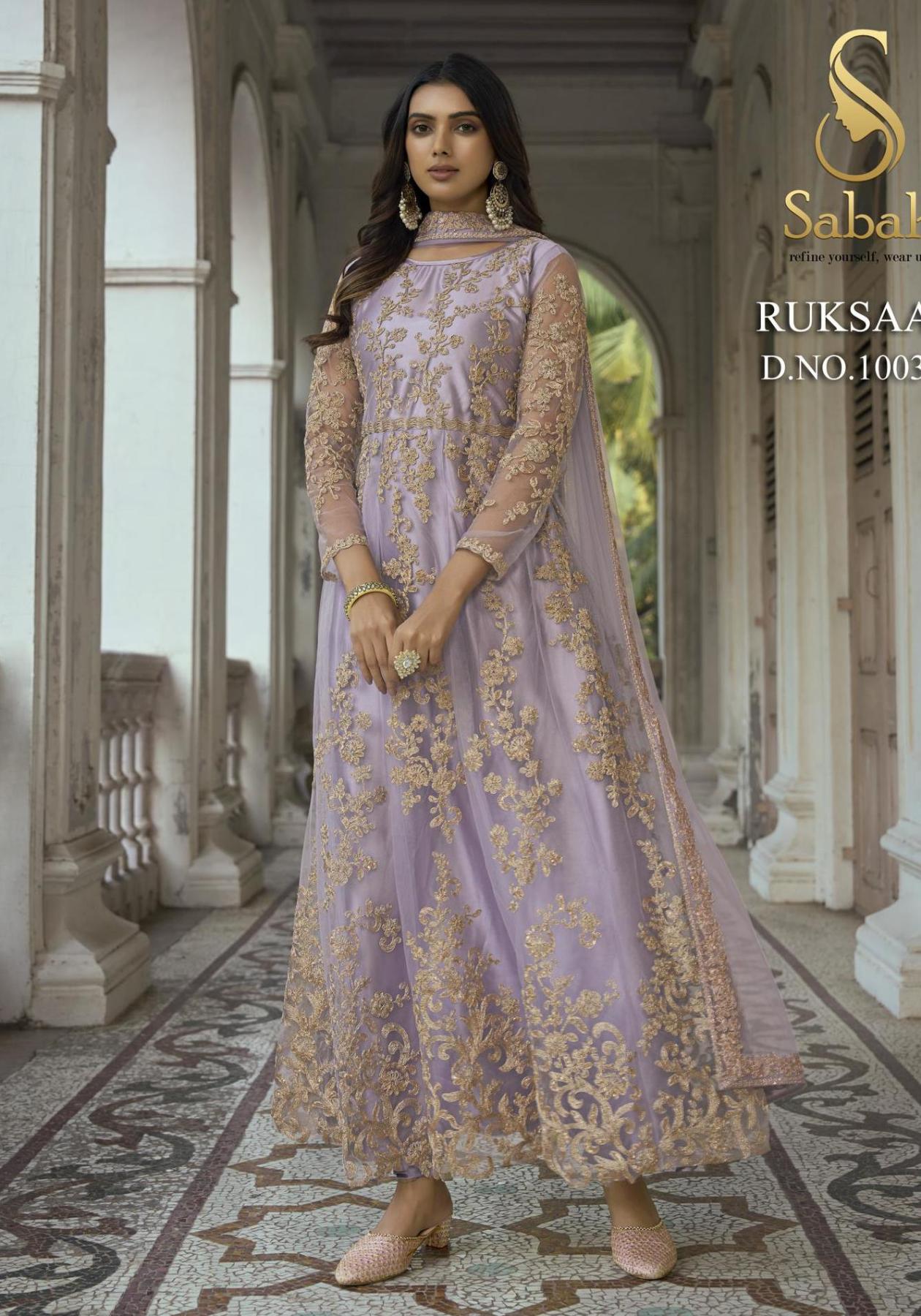 Buy Net & Satin & Silk Dark Grey Anarkali Salwar Kameez online.